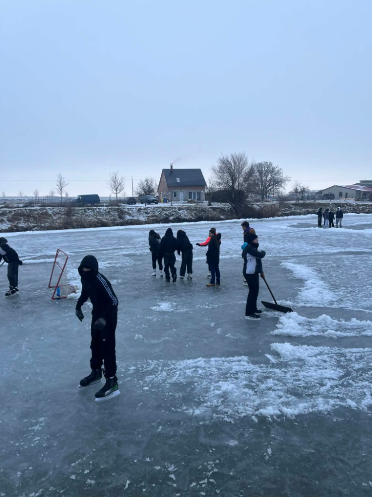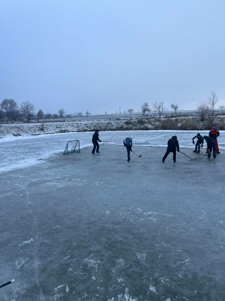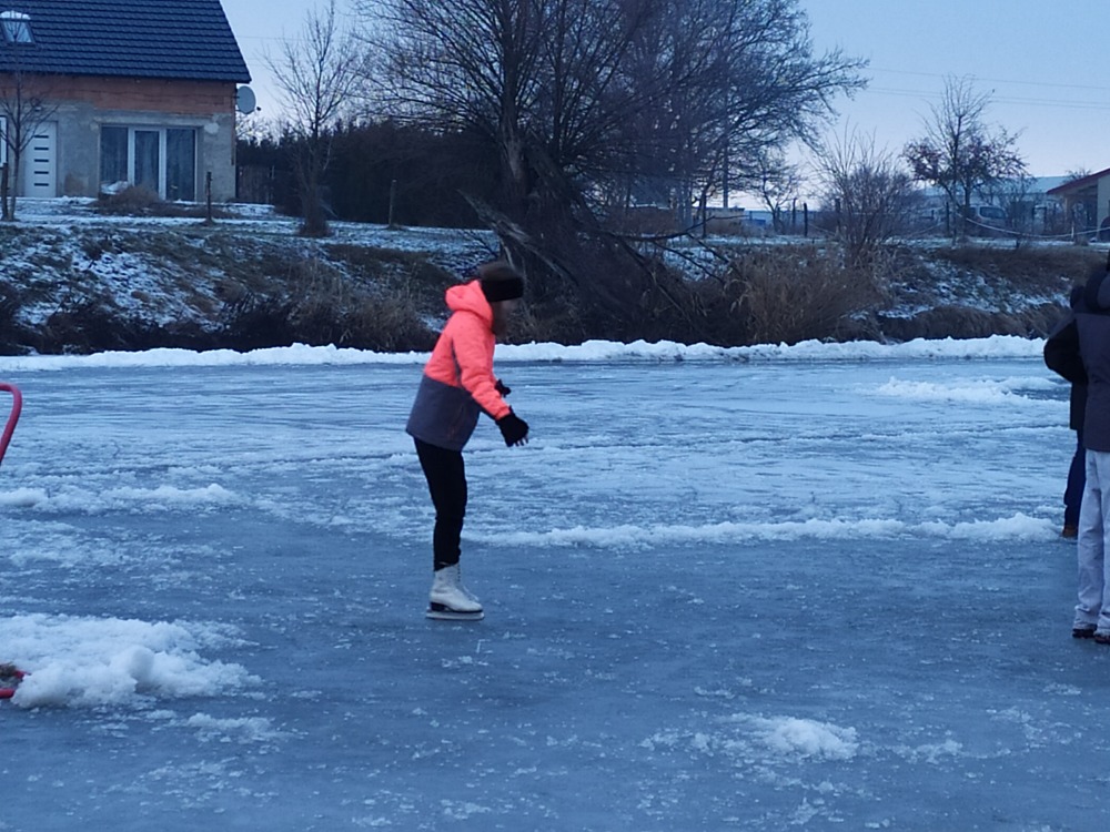 Poslední roky jsme vyjížděli za bruslením na znojemské kluziště. Až letos se poštěstilo. Paní zima ukázala co umí, mrazivé teploty až minus 15 stupňů jsme koneckonců pocítili i na lyžařském výcviku v Beskydech. Příznivci bruslení již o víkendu vyráželi na vodní plochy, aby si zdokonalili své bruslařské a hokejové dovednosti a zažili trošku legrace, když to občas uklouzne a my skončíme na svých zadnicích na ledu. My jsme s odvážlivci z osmého a devátého ročníku vyrazili na hrabětický rybník Kačák. Přestože nám přes noc na led napršel mokrý sníh a zamrzlý rybník pokryla ledová krusta, nenechali jsme se odradit a užili si tam úterní odpoledne.